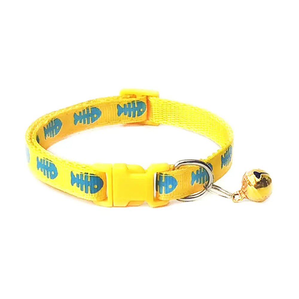 Pets Dog Cat Fish Bone Print Bell Buckle Adjustable Collar Necklace Neck Strap